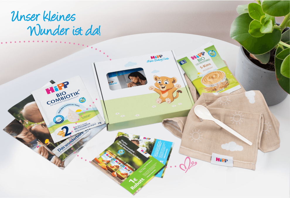 Im kostenlosen HiPP Mein BabyClub steht ihr als werdende Familie im Mittelpunkt. Wir begleiten euch ab Beginn der Schwangerschaft. Freu dich auf unsere persönlichen Geschenke für dich und für dein Baby, wöchentliche Tipps für die Schwangerschaft und unzählige Rabatte von exklusiven Partnern.
