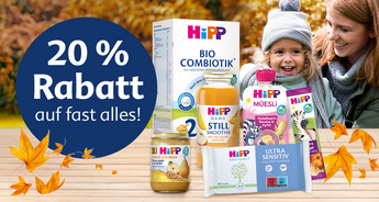 1) Rabattcode „HiPP20“ muss erfolgreich im Warenkorb eingelöst werden. Gültig bis zum 28.11.2025, 23:59 Uhr. Ausgenommen sind aus rechtlichen Gründen HiPP Anfangs- und Spezialnahrungen sowie bereits reduzierte Vorteils- und Aktionsartikel. Nicht kombinierbar mit anderen Vorteilen.