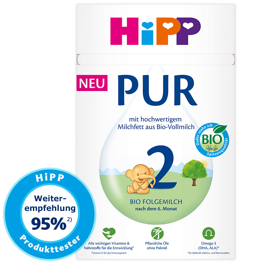 Sorgfältig ausgewählte Zutaten in bewährter HiPP Spitzenqualität zeichnen HiPP PUR aus. Besonders überzeugt HiPP PUR durch natürliches Milchfett aus Bio-Vollmilch. Für einen guten Start von Anfang an.