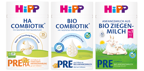 • HiPP PRE HA COMBIOTIK ist dagegen für Babys mit erhöhtem Allergierisiko entwickelt. Das Eiweiß in dieser Nahrung ist hydrolysiert (aufgespalten), wodurch sie besonders leicht verdaulich ist.