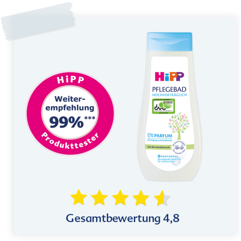 *** 150 Eltern wurden zum HiPP HOCHVERTRÄGLICH Pflegebad befragt. 99% würden dieses weiterempfehlen.