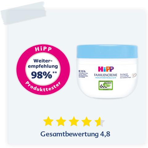 „Die HiPP Familiencreme ist einfach fantastisch! Meine ganze Familie liebt sie – so mild, sanft zur Haut und unglaublich pflegend. Absolut empfehlenswert!“