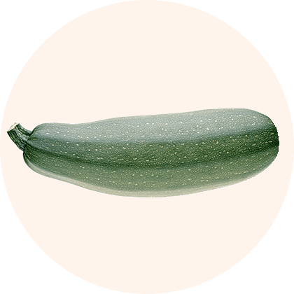Eine grüne Zucchini mit glatter Textur und leicht länglicher Form.